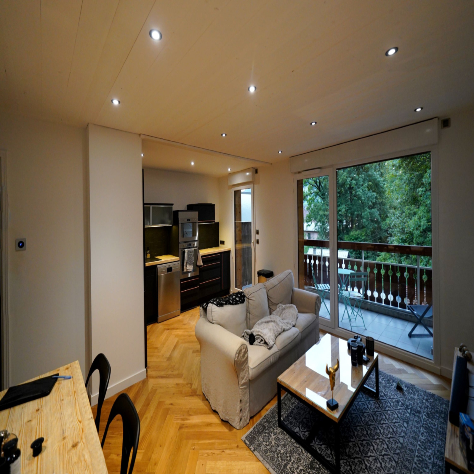Exclusif, Magnifique 3 pièces entièrement refait à neuf, prestation standing. L'appartement est exposé sur 3 cotés, en dernier étage avec ascenseur; il dispose d'un large balcon plein Sud avec une vue ouverte sur Thones et les montagnes. Cuisine totalement équipée, parquet chêne positionné en point de Hongrie, le séjour est doté d'un chauffage poele bois a granulés (rare en copropriété), chauffage électrique avec une base au sol, chaque pièce est régulée indépendamment par un thermostat electronique de dernière génération. Magnifique salle de bains et toilettes, l'appartement est pleinement pret-a-vivre pour un acquéreur en recherche de beaux produits, avec un accès au centre de Thones en 5 mn à pied. En annexes un garage, une cave et une place extérieure privative. En copropriété. Nombre de lots principaux : 9 Charges annuelles : 1500€ Pas de procédure en cours.